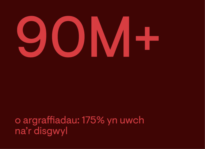 + Canlyniad ffigyrau sianeli digidol a marchnad +1,080% yn uwch na’r disgwyl (cyfanswm o 677,999 clic).
