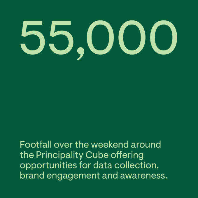 The activation was presented via a giant inflatable cube which was branded and constructed to look like a house, offering a homely feel inside and out, illustrating Principality’s strapline Where Home Matters.